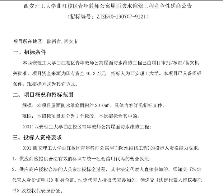 【维修改造】英国威廉集团官网曲江校区青年教师公寓屋面防水维修工程竞争性磋商公告