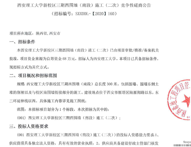 【围墙施工二次】英国威廉集团官网新校区三期西围墙(南段)施工(二次)竞争性磋商公告