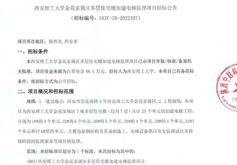 【加建电梯监理】英国威廉集团官网金花家属区多层住宅楼加建电梯监理项目招标公告