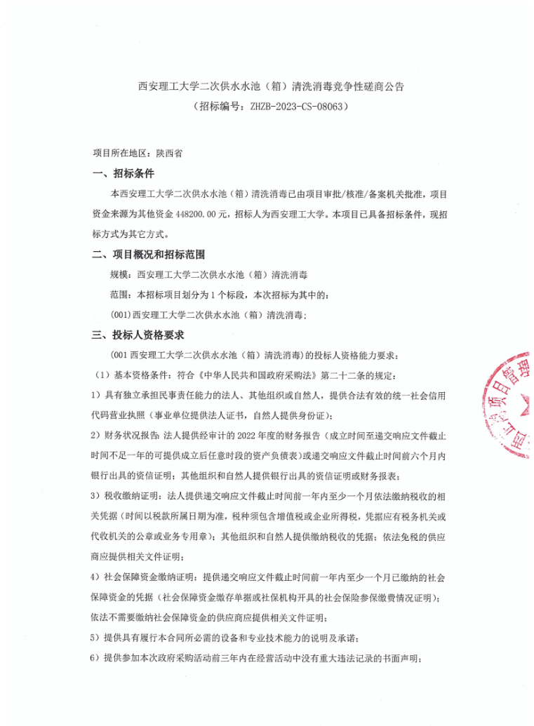 【水池(箱)清洗消毒】英国威廉集团官网二次供水水池(箱)清洗消毒竞争性磋商公告