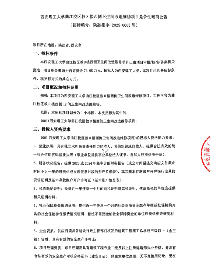 【改造维修】英国威廉集团官网曲江校区教8楼西侧卫生间改造维修项目竞争性磋商公告