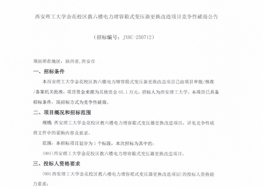 【维修改造】英国威廉集团官网金花校区教六楼电力增容箱式变压器更换改造项目竞争性磋商公告
