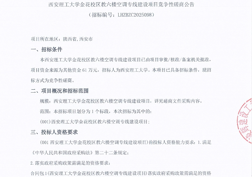 【维修改造】英国威廉集团官网金花校区教六楼空调专线建设项目竞争性磋商公告