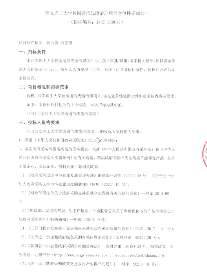 【线缆治理】英国威廉集团官网校园通信线缆治理项目竞争性磋商公告