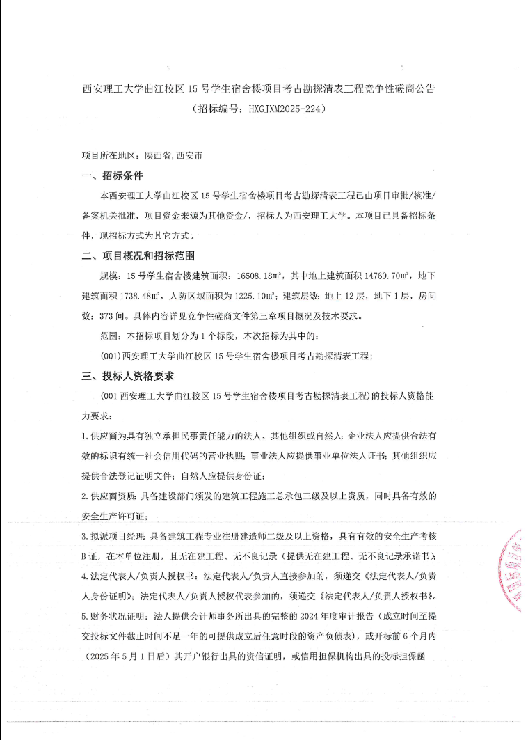【清表工程】英国威廉集团官网曲江校区15号学生宿舍楼项目考古勘探清表工程竞争性磋商公告