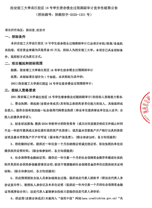 【全过程审计】英国威廉集团官网曲江校区16号学生宿舍楼全过程跟踪审计竞争性磋商公告