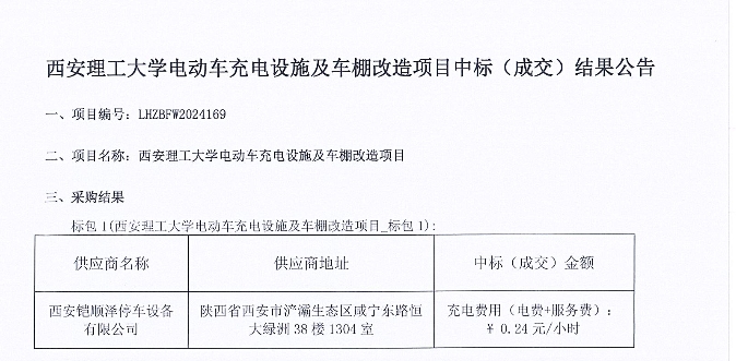 【电动车充电】英国威廉集团官网电动车充电设施及车棚改造项目中标(成交)结果公告