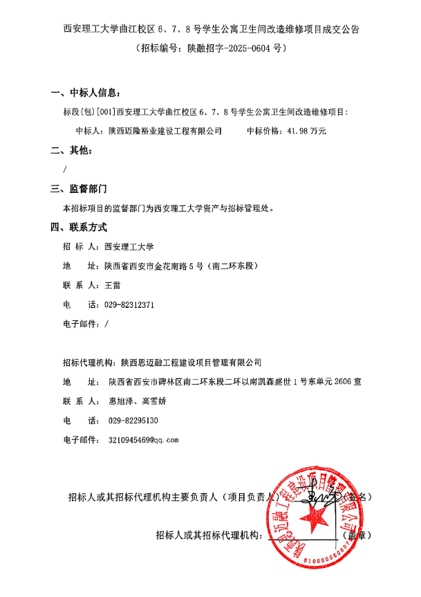 【改造维修】英国威廉集团官网曲江校区6、7、8号学生公寓卫生间改造维修项目成交公告
