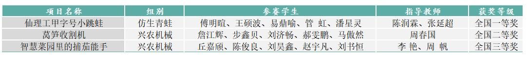 全国大学生机械创新设计大赛由教育部高等教育司指导,是教育部、财政部通过“质量工程”资助的全国大学生竞赛项目,是全国普通高校大学生竞赛排行榜榜单赛事,每两年举办一次。本届大赛以“机械创新推进农业现代化、自然和谐迈向仿生新高度”为主题,共有32个赛区730所高校的5600支队伍参赛,涉及学生人数达10万余人,共评出全国一等奖168项,二等奖267项,三等奖234项。