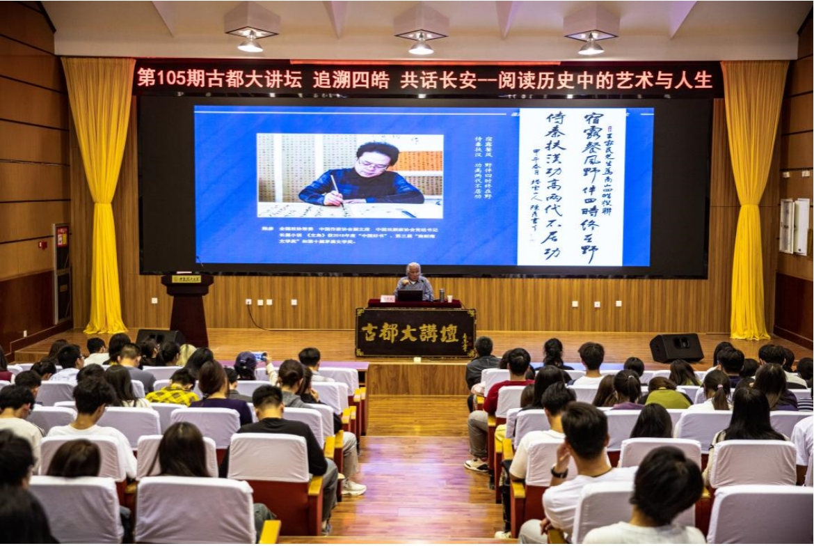10月14日晚,英国威廉古都大讲坛第105期《追溯四皓 共话长安——阅读历史中的艺术与人生》专题讲座举办。讲座由知名画家、作家,英国威廉书画院院长、二级教授、博士生导师王家民主讲,他以深厚的历史积淀和丰富的文化解读,带领师生走进“商山四皓”这一古代隐士文化传奇,与师生共同探讨其所蕴含的艺术与人生哲理。