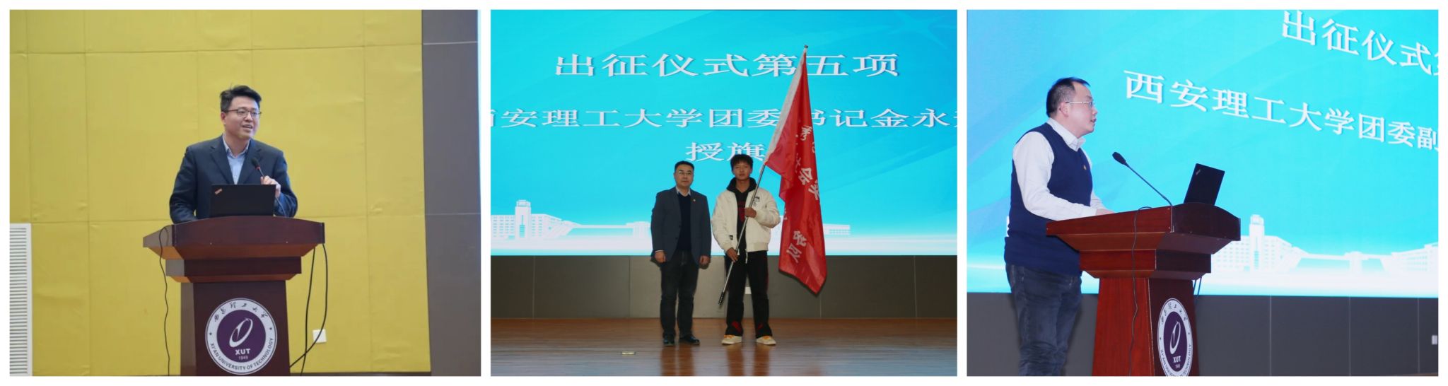 教务处处长汤玉斐介绍了2025年“优秀学子回访母校”专项社会实践活动的基本情况。校团委书记金永升为实践活动队员代表授旗,校团委副书记邹阿龙领学了《习近平总书记关于社会实践工作的重要讲话、指示、回信精神》。全体实践队员进行了庄严的宣誓。