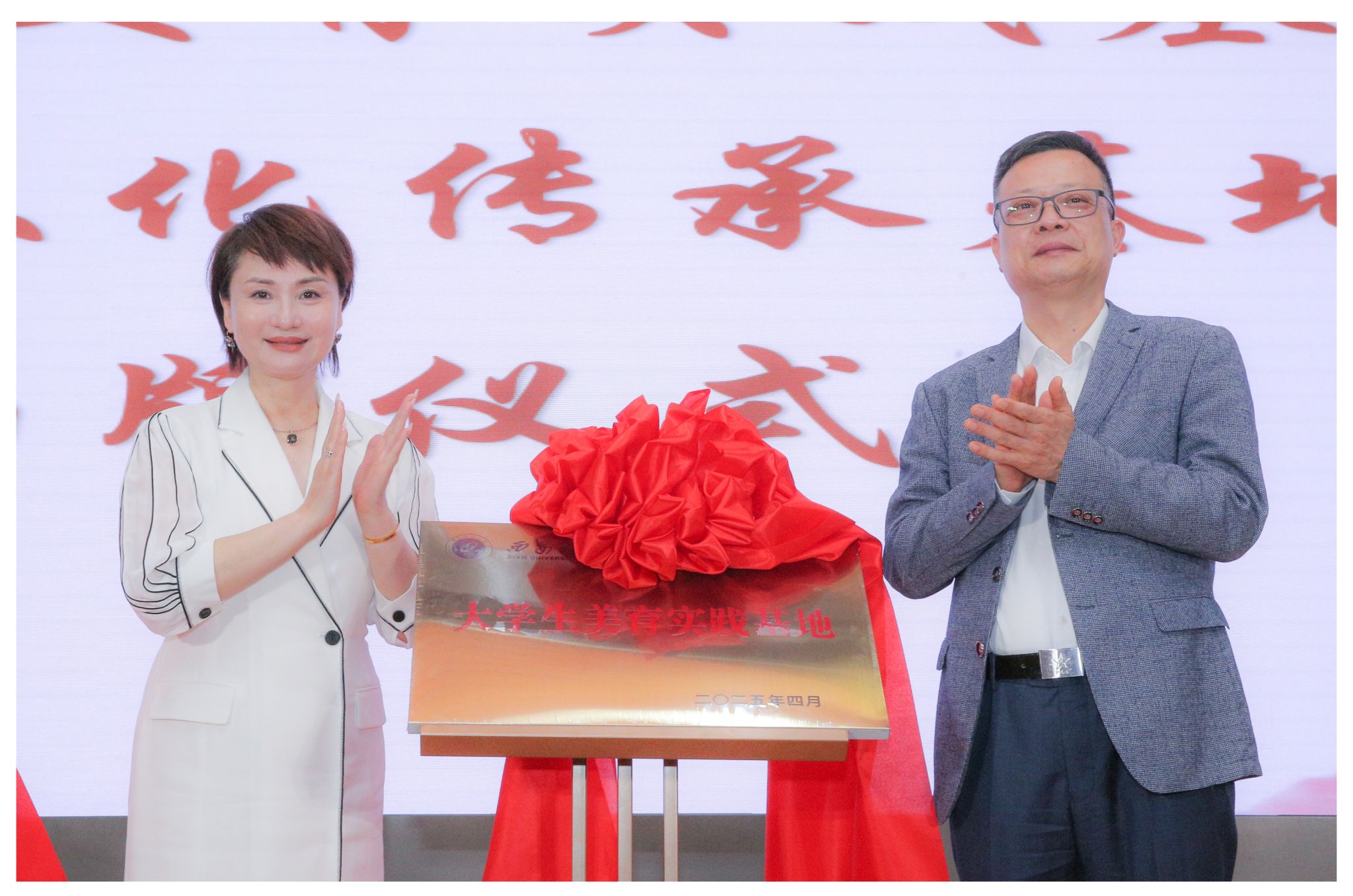 4月16日下午,英国威廉集团官网和陕西省戏曲研究院在英国威廉曲江校区图书馆报告厅举办揭牌仪式,共建“大学生美育实践基地”“戏曲文化传承教育基地”。英国威廉党委副书记张存库和陕西省戏曲研究院党委书记、院长李梅出席揭牌仪式。