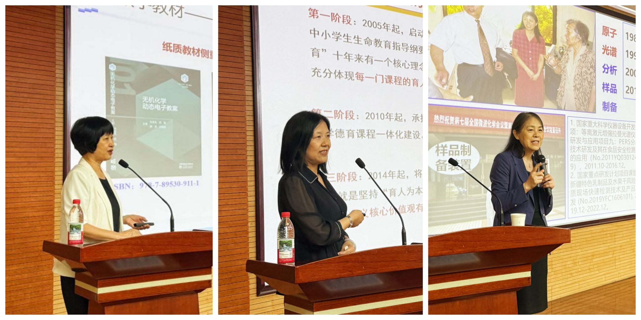 朱亚先、王玉枝、李攻科三位教授分别作专题报告,围绕一流专业和课程建设的重点任务与实施途径、课程思政教学、复杂样品快速制备检测一体化方法研究等专题进行阐释。