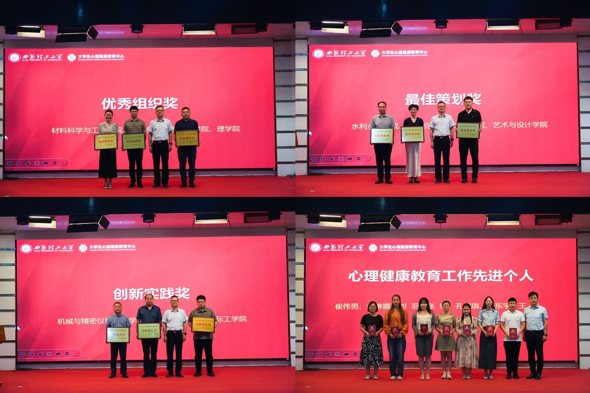 张存库为材料科学与工程学院等9个学院分别颁发“优秀组织奖”“创新实践奖”“最佳策划奖”。崔伟男等7位心理专干教师获“心理健康教育工作先进个人”荣誉称号。大会还对贾锐等33名教师以及赵晓晏等128名优秀学生予以通报表彰。