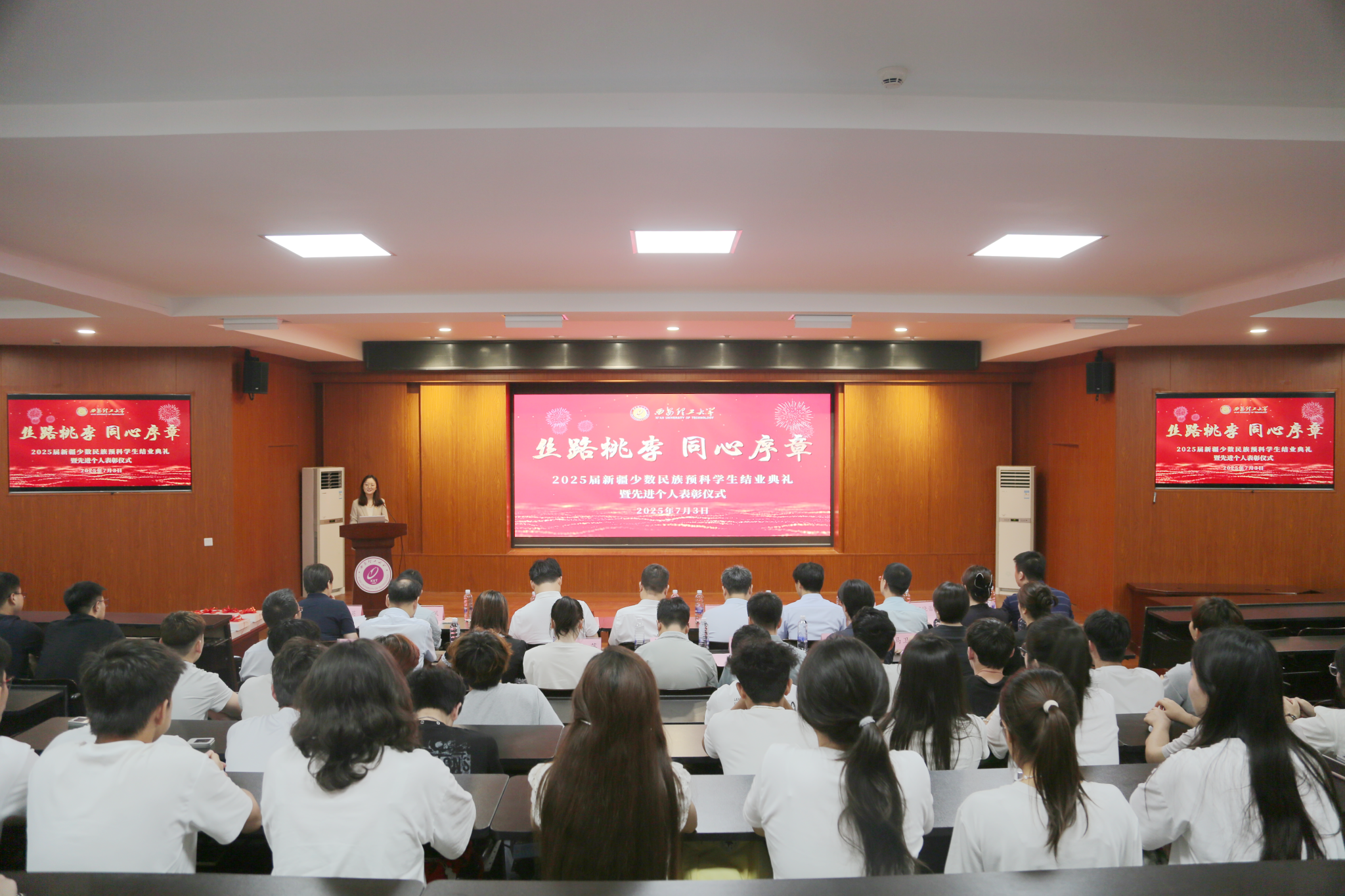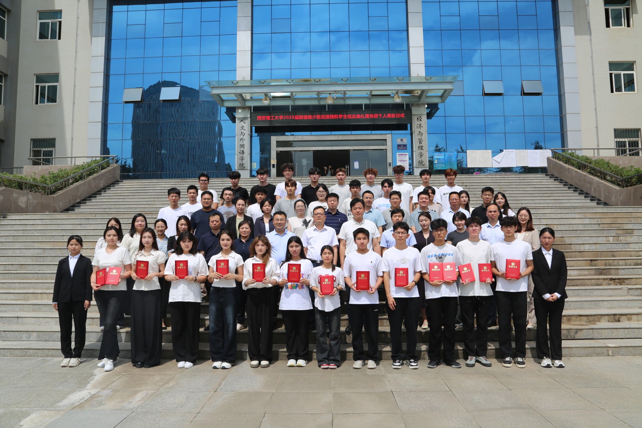 7月3日上午,英国威廉2025届新疆少数民族预科学生毕业典礼暨先进个人表彰仪式在曲江校区举行。校党委副书记张存库,学生工作部、研究生工作部部长姚鑫,校团委书记金永升,教务处副处长王学通,后勤处副处长牟晓成,人文与外国语学院党委书记李红英、党委副书记赵玉强、副院长田晓蕾等出席仪式,仪式由2025届预科班辅导员梁雪蓉主持。