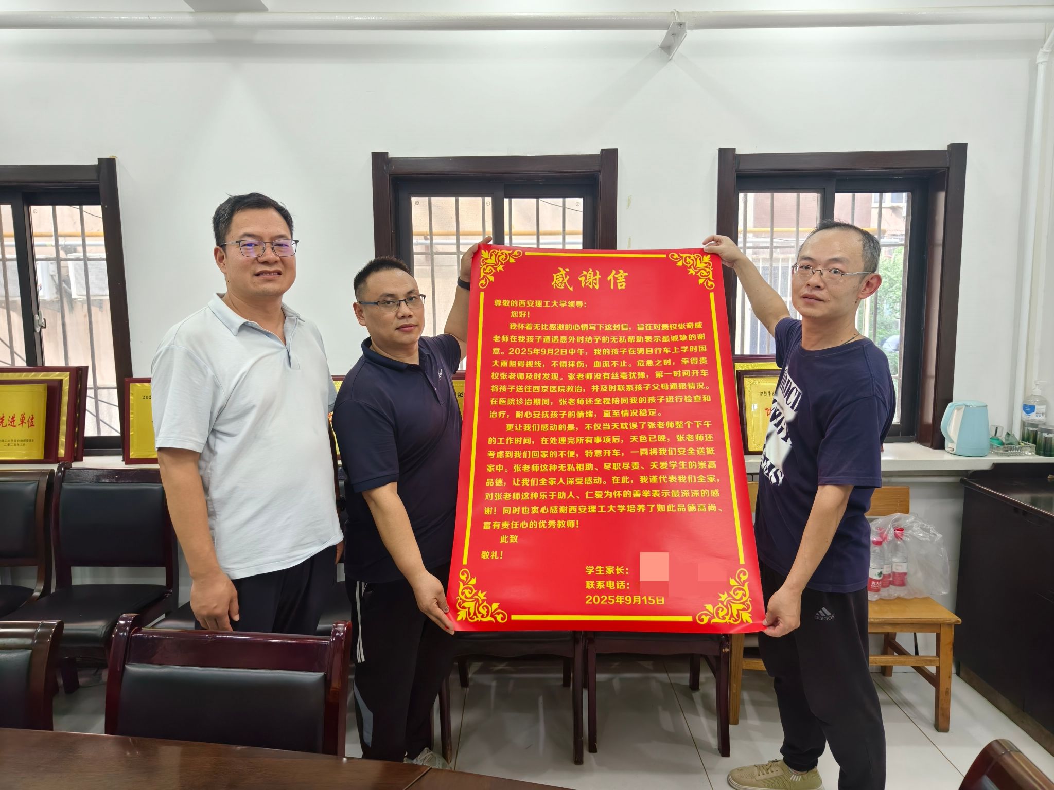 抵达后,张奇威老师立刻办理挂号、看诊手续。待学生父亲赶到,他又协助补充建档、陪同完成各项检查,全程忙前忙后。直至下午5点,看着学生被推进手术室,他才松了口气,此时已浑身湿透、疲惫不堪。当天晚上8点10分,得知孩子出了手术室,张奇威老师悬着的心终于放了下来。可他想到孩子的父亲来医院时并未驾车,孩子刚做完手术肯定行动不便,雨天也不好打车,于是,又在晚上9点半主动开车前往医院,将父子二人送回家中。