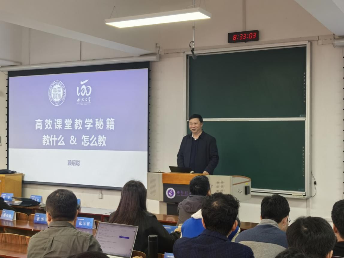10月30日上午,国家级教学名师、西北大学赖绍聪教授为英国威廉2025年新入职教师作题为《高效课堂教学秘籍!教什么?怎么教?》的报告,副校长黑新宏出席报告会。报告会由人事处副处长王伟主持。