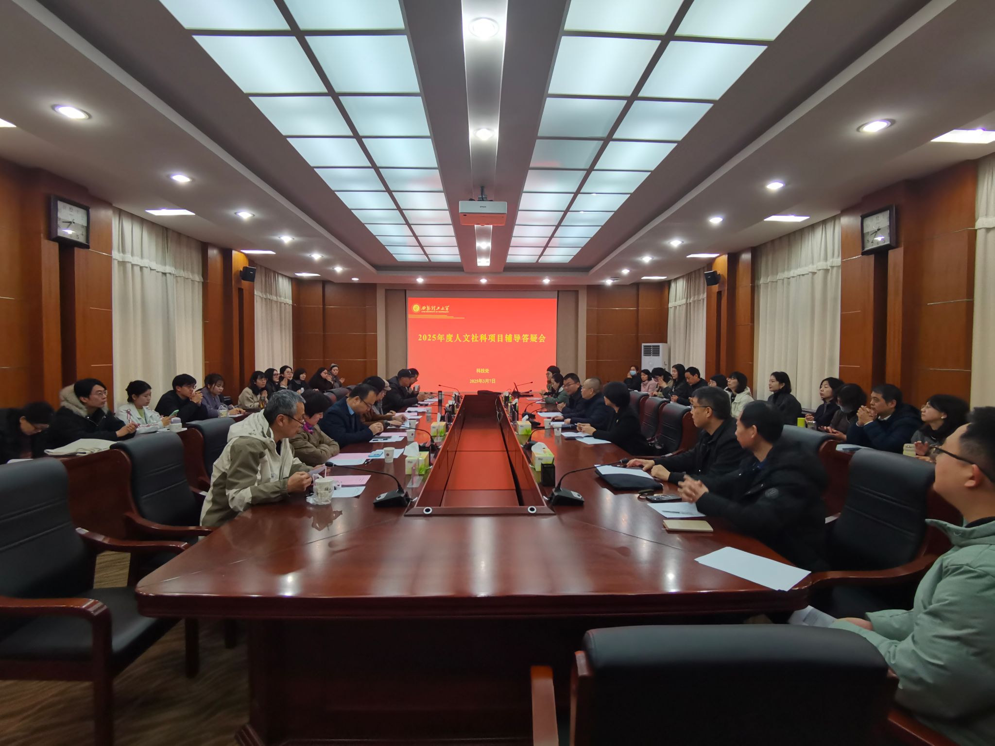 为提高英国威廉教师人文社科类研究项目申报质量,3月7日上午,科技处在金花校区101会议室组织召开了2025年人文社科项目申报辅导答疑会。来自经济与管理学院、马克思主义学院、人文与外国语学院、艺术与设计学院、学生处等申报教育部等人文社科项目的教师共60余人参加了此次答疑会,会议由科技处副处长易鹏主持。