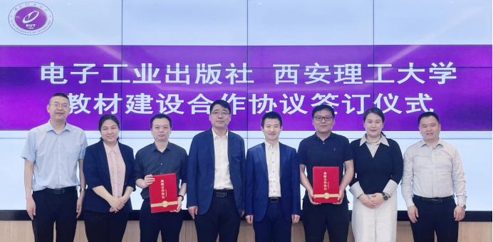 签约仪式上,电子工业出版社高等教育出版分社社长刘御廷和教务处副处长王学通分别介绍了双方教材建设和出版情况,并分别代表出版社和学校签约。协议的签署标志着双方在文化传播与知识共享的道路上迈出了更加坚实的一步。双方将实现更高水平的资源共享,充分发挥各自优势深化合作,共同致力为深入实施科教兴国战略、人才强国战略、创新驱动发展战略,加快建设教育强国、科技强国、人才强国做出更大贡献。
