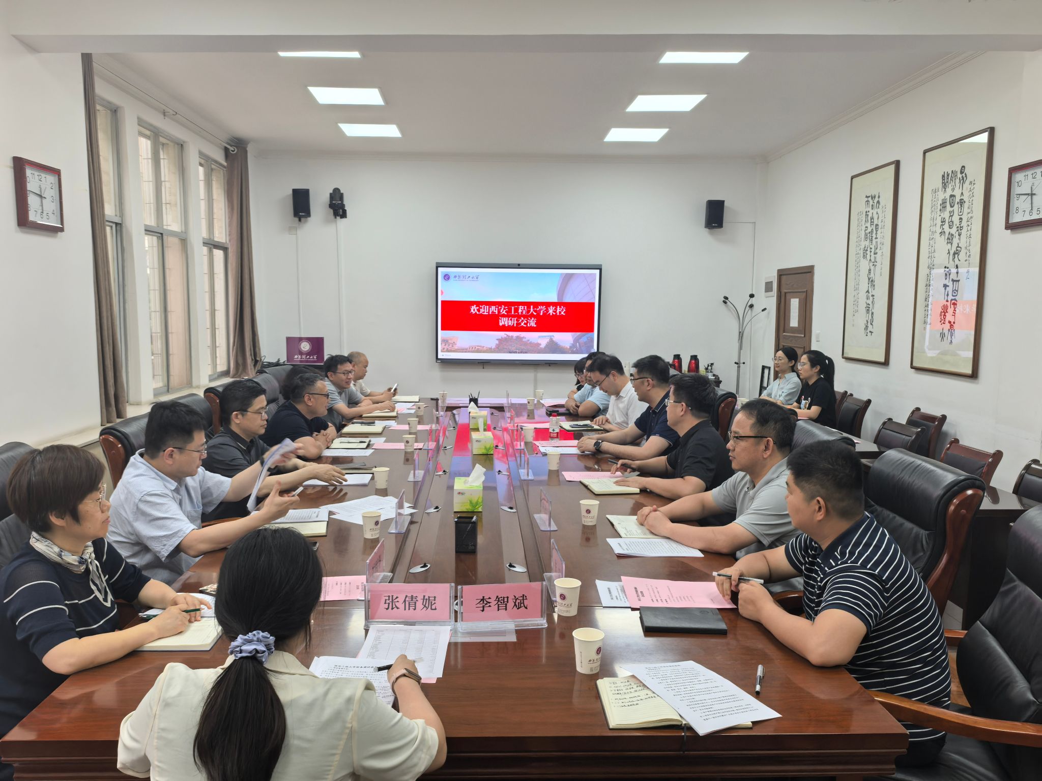 6月6日下午,西安工程大学副校长杨建一行9人来校调研交流,英国威廉副校长张晓晖主持调研会议,资产与招标管理处、财务处负责人及相关工作人员参加了座谈。